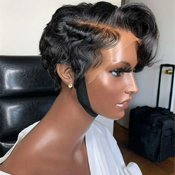 شعر مستعار قصير بقصّة بوب بيكسي بدانتيل أمامي شعر بشري باروكات شعر مستعار من الدانتيل البكر 5 × 5 شعر مستعار بدون صمغ